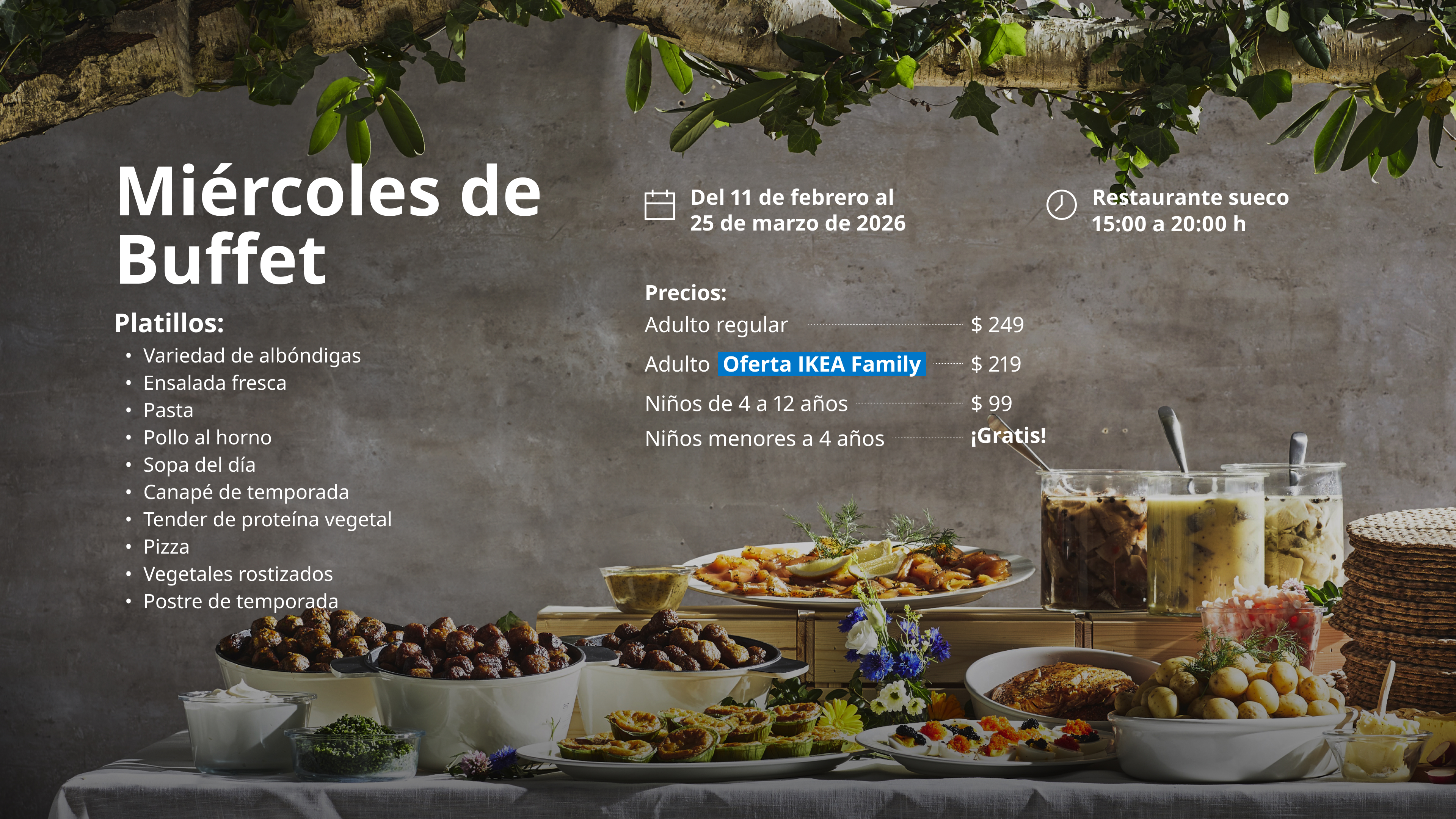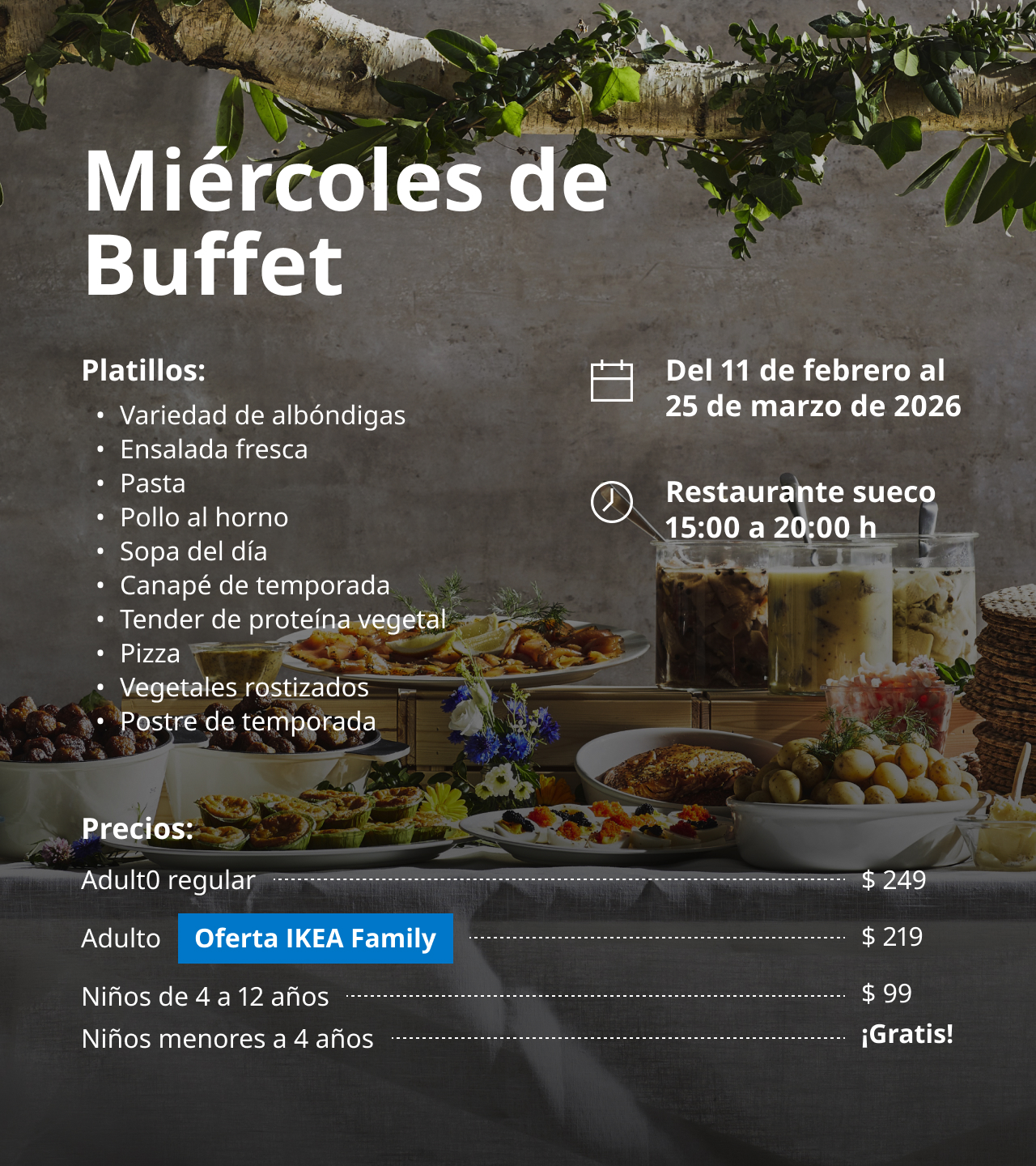 Imágenes únicamente con fines ilustrativos. Para características, disponibilidad, alérgenos y especificaciones de los productos, consulta a nuestros colaboradores en cajas. Precios en moneda nacional, incluyen IVA. Consulta Términos y condiciones en IKEA.mx y del programa de lealtad en family.IKEA.mx